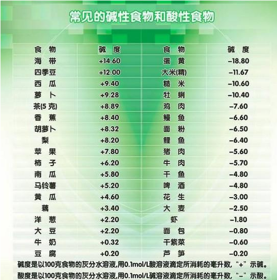 据研究,健康人内环境的PH值在7.35-7.45之间,换句话来说,就是人体的体液应该保持弱碱性才能维持正常的生理功能和物质代谢。因此,我们需要通过补充碱性食物来维持人体酸碱平衡。
